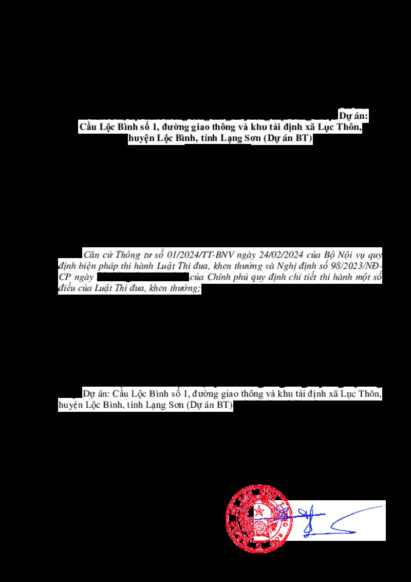 | Tiêu đề văn bản | QUYẾT ĐỊNH Về việc tặng Giấy khen của Chủ tịch UBND xã cho tập thể, cá nhân có thành tích xuất sắc, đột xuất trong công tác giải phóng mặt bằng thuộc Dự án: Cầu Lộc Bình số 1, đường giao thông và khu tái định xã Lục Thôn, huyện Lộc Bình, tỉnh Lạng Sơn (Dự án BT) | ||