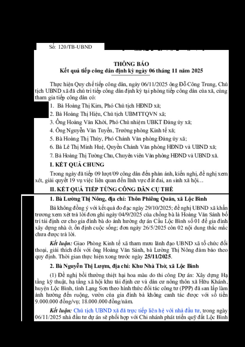 | Tiêu đề văn bản | THÔNG BÁO Kết quả tiếp công dân định kỳ ngày 06 tháng 11 năm 2025 | ||