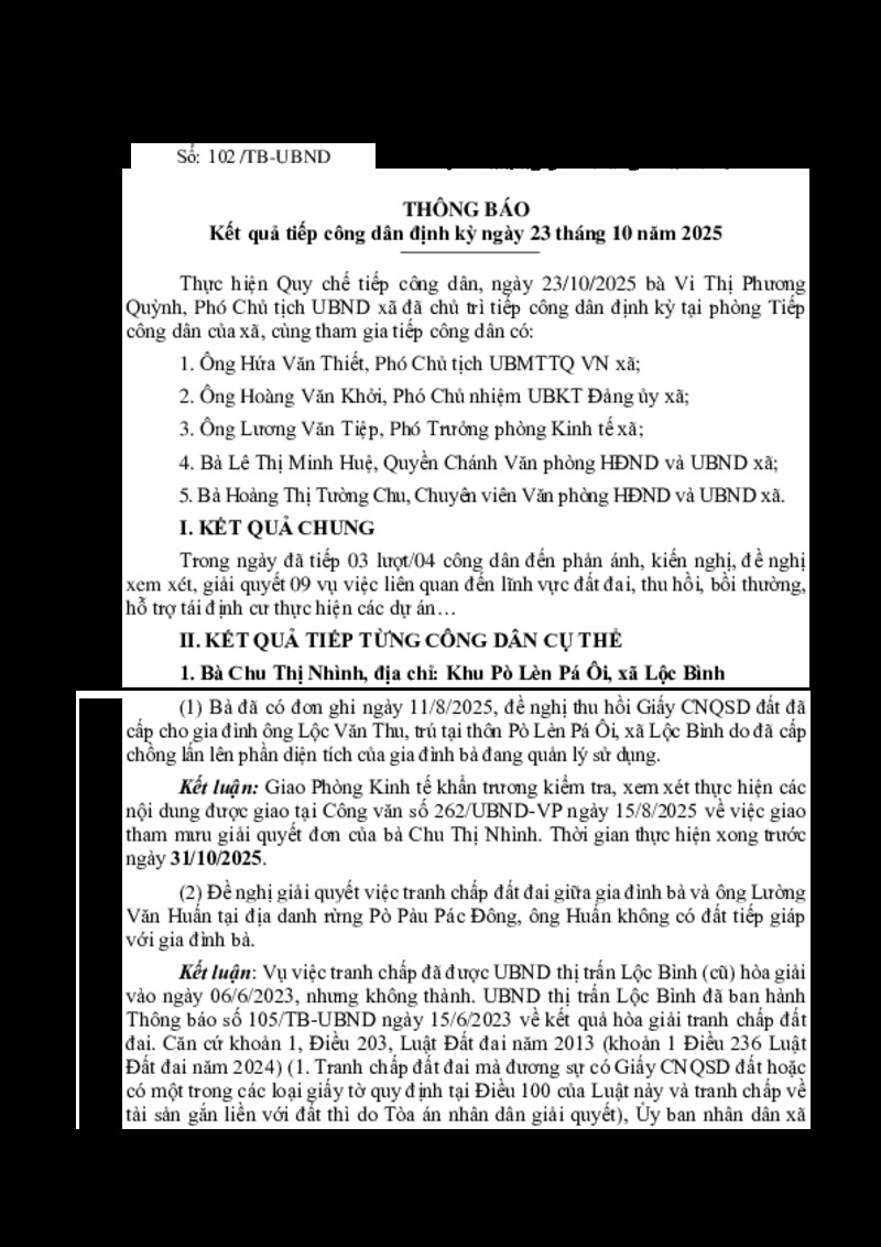 | Tiêu đề văn bản | THÔNG BÁO Kết quả tiếp công dân định kỳ ngày 23 tháng 10 năm 2025 | ||