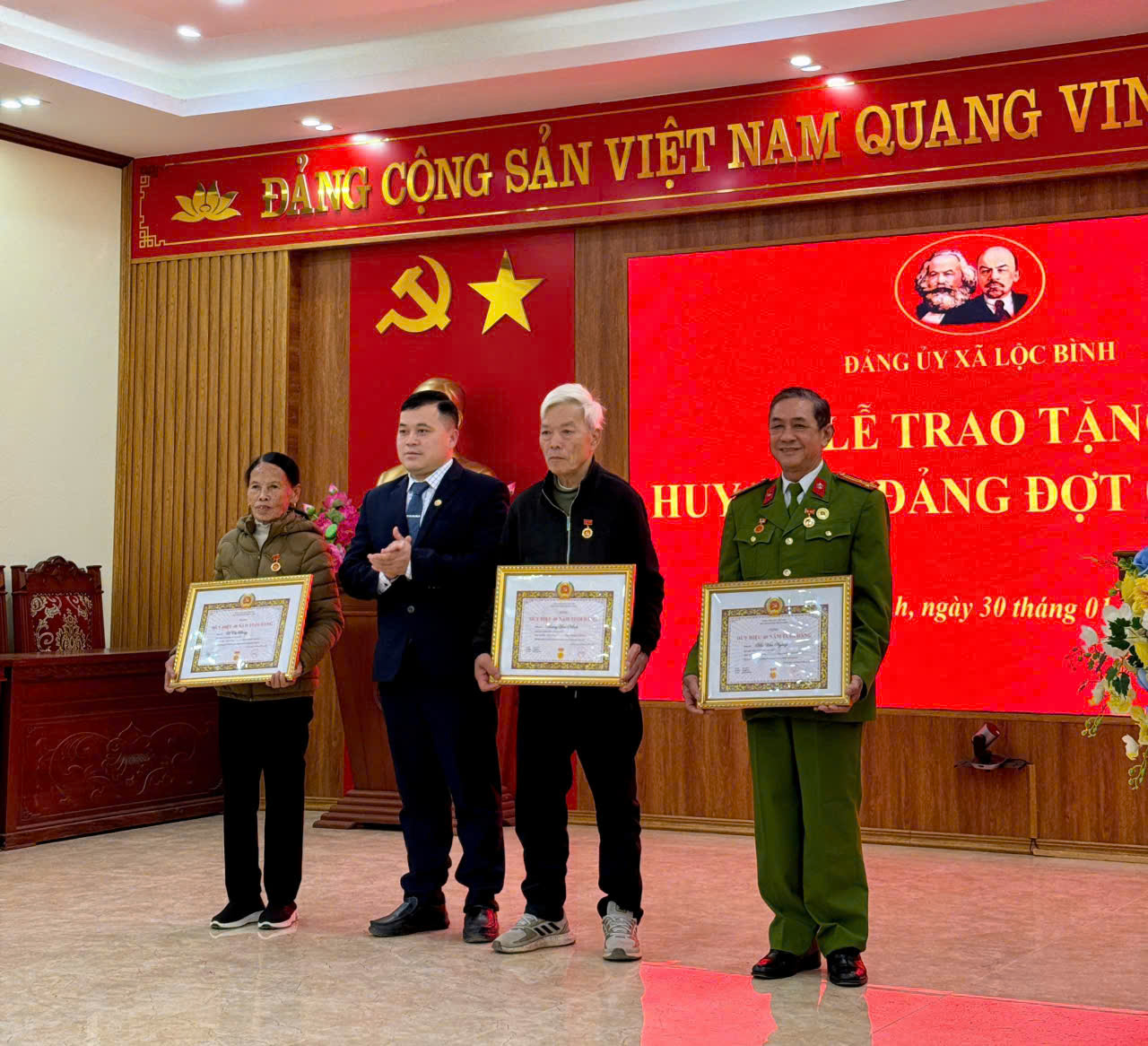 Nhân kỷ niệm 96 năm Ngày thành lập Đảng Cộng sản Việt Nam (03/02/1930 - 03/02/2026). Trong đợt này, Tỉnh ủy Lạng Sơn quyết định tặng Huy hiệu Đảng cho 15 đảng viên thuộc Đảng ủy xã Lộc Bình, cụ thể: có 01 đảng viên được nhận Huy hiệu 65 năm tuổi Đảng, 01 đảng viên được nhận Huy hiệu 55 năm tuổi Đảng, 02 đảng viên được nhận Huy hiệu 45 năm tuổi Đảng, 05 đảng viên được nhận Huy hiệu 40 năm tuổi Đảng và 06 đảng viên được nhận Huy hiệu 30 năm tuổi Đảng.