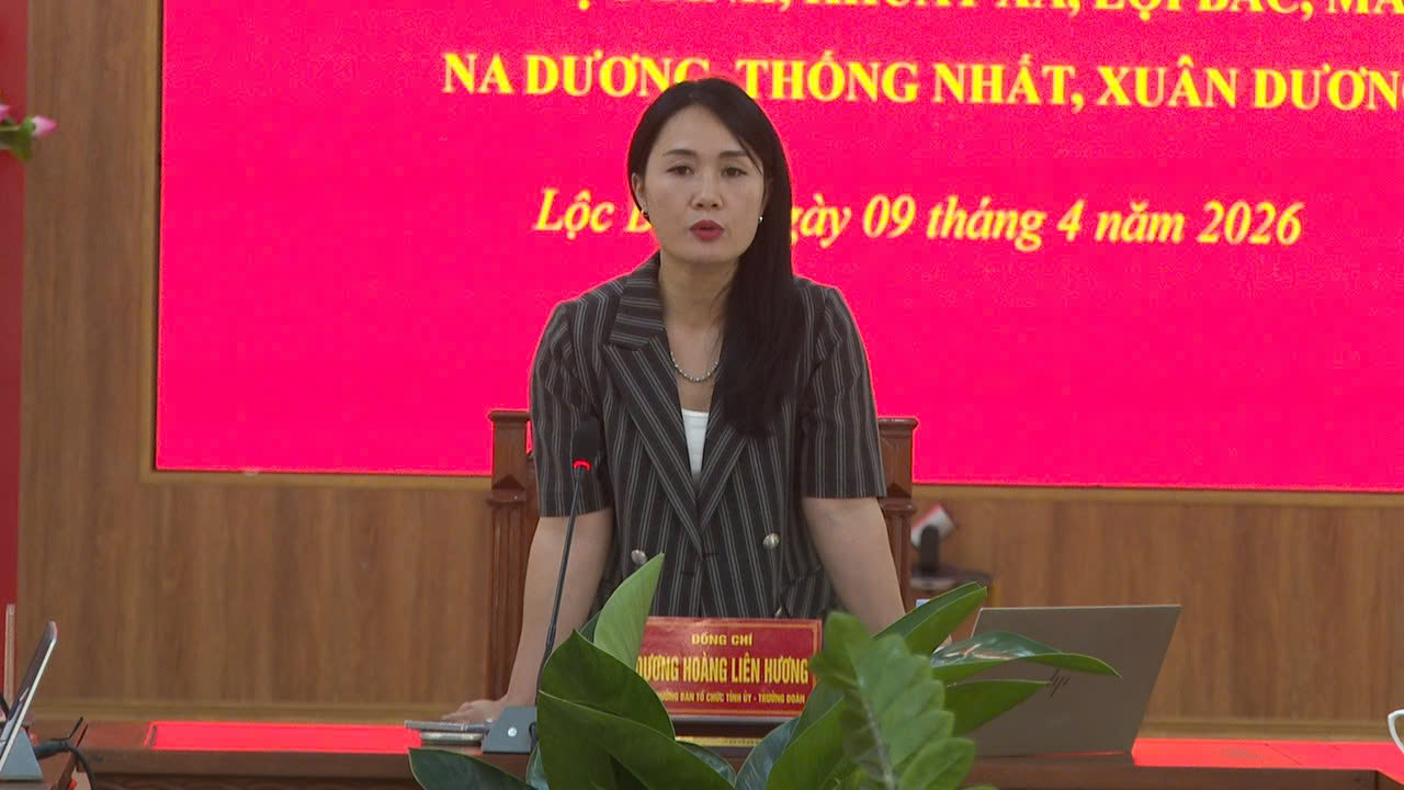 Ngày 09/4/2026, Đoàn kiểm tra số 4 của Ban Tổ chức Tỉnh ủy do đồng chí Dương Hoàng Liên Hương, Phó trưởng Ban Tổ chức Tỉnh ủy làm Trưởng đoàn đã có buổi làm việc với Ban thường vụ Đảng ủy 07 xã gồm: Lộc Bình, Thống Nhất, Mẫu Sơn, Khuất Xá, Na Dương, Lợi Bác, Xuân Dương. Dự làm việc với Đoàn về phía xã Lộc Bình có đồng chí Trịnh Tuấn Đông, Bí thư Đảng ủy, Chủ tịch HĐND xã; đồng chí Lăng Văn Chí, Phó Bí thư Thường trực Đảng ủy xã; đồng chí Triệu Thanh Hùng, Phó Chủ tịch UBND xã, lãnh đạo Ban xây dựng Đảng, Phòng Văn hoá - Xã hội xã. Thường trực Đảng ủy, lãnh đạo Ban xây dựng Đảng, Phòng Văn hoá - Xã hội các xã Thống Nhất, Mẫu Sơn, Khuất Xá, Na Dương, Lợi Bác, Xuân Dương.