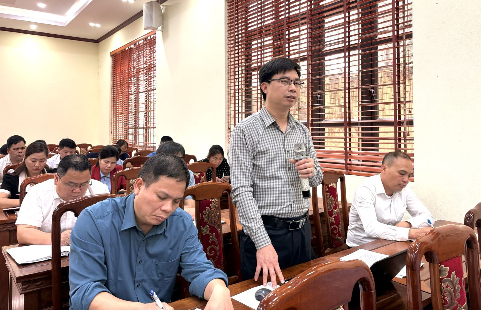 Lãnh đạo phòng chuyên môn của huyện phát biểu thảo luận tại hội nghị
