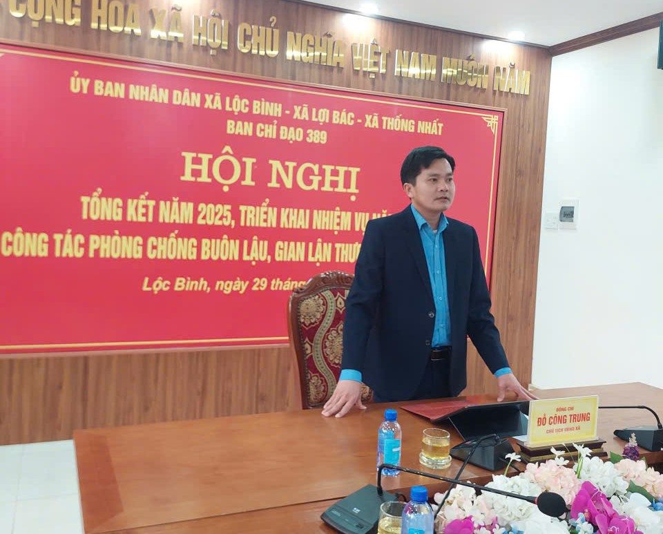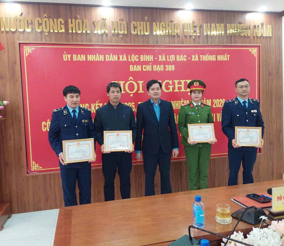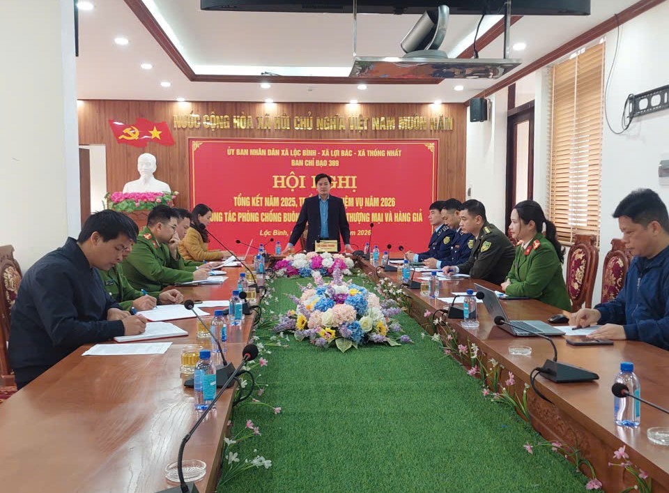 BAN CHỈ ĐẠO 389 CỦA 03 XÃ LỘC BÌNH, LỢI BÁC, THỐNG NHẤT TỔ CHỨC HỘI NGHỊ TỔNG KẾT CÔNG TÁC CHỐNG BUÔN LẬU, GIAN LẬN THƯƠNG MẠI VÀ HÀNG GIẢ NĂM 2025; TRIỂN KHAI NHIỆM VỤ NĂM 2026