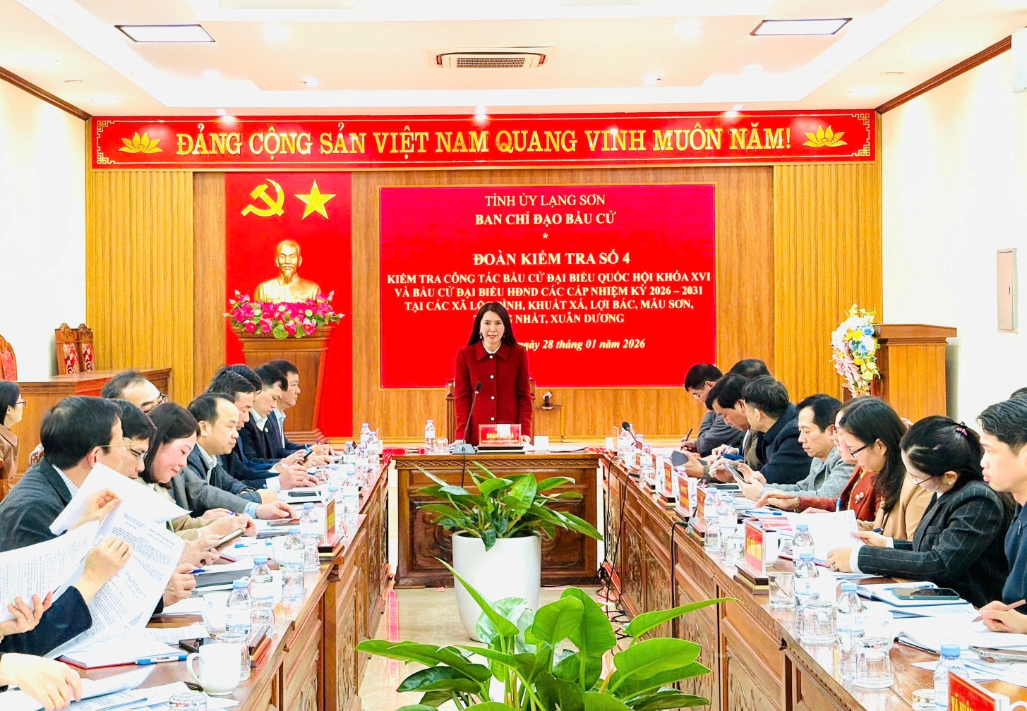 Ngày 28/01/2026, tại Hội trường Ban Chấp Hành Đảng ủy xã Lộc Bình, Đoàn kiểm tra số 04 của tỉnh do đồng chí Đoàn Thu Hà, Phó Bí thư Tỉnh ủy, Chủ tịch Ủy ban Mặt trận Tổ quốc Việt Nam tỉnh, Phó Trưởng Ban Chỉ đạo bầu cử tỉnh làm Trưởng đoàn kiểm tra. Tham gia đoàn có các đồng chí Đậu Trường An,Chánh Thanh tra tỉnh, đồng chí Nguyễn Hữu Chiến, Giám đốc Sở Nông nghiệp và Môi trường; đồng chí Đinh Đức Chính, Chánh Văn phòng Tỉnh ủy; đại diện lãnh đạo: Sở Nội vụ, Sở Tài chính, Văn phòng Đoàn đại biểu Quốc hội và HĐND tỉnh và đại diện cơ quan Uỷ ban MTTQ Việt Nam tỉnh. Làm việc với Đoàn kiểm tra có lãnh đạo Thường trực Đảng ủy, HĐND, UBND, lãnh đạo các cơ quan tham mưu công tác bầu cử các xã: Lộc Bình, Mẫu Sơn, Na Dương, Lợi Bác, Thống Nhất, Xuân Dương, Khuất Xá.