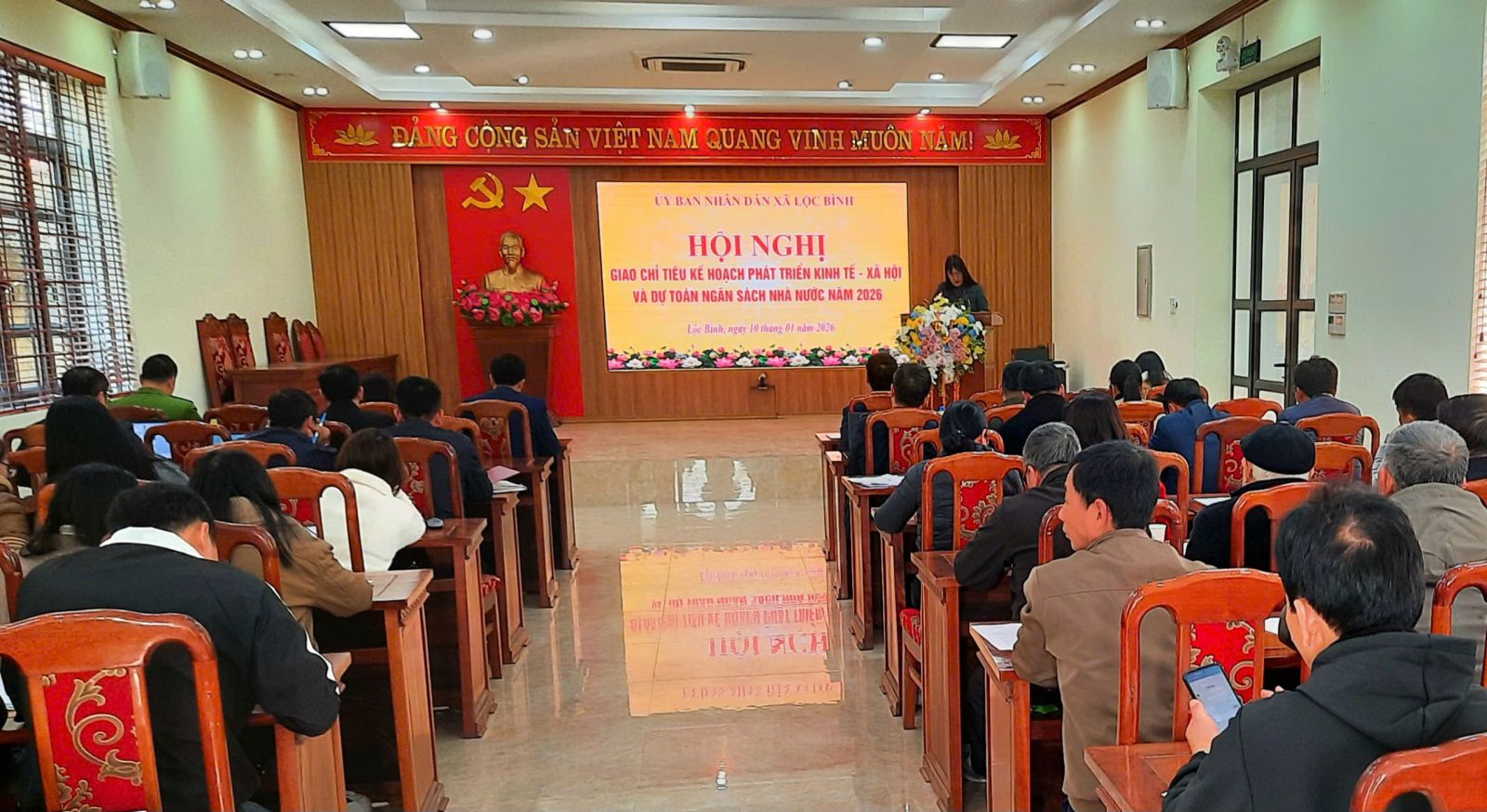 Ngày 10/01/2026, UBND xã Lộc Bình tổ chức Hội nghị triển khai kế hoạch phát triển kinh tế – xã hội và dự toán ngân sách nhà nước năm 2026. Hội nghị do đồng chí Đỗ Công Trung – Chủ tịch UBND xã chủ trì, với sự tham dự của lãnh đạo Đại diện Lãnh đạo Đảng ủy xã; Lãnh đạo UBND xã; Đại diện Lãnh đạo Ủy ban MTTQ VN xã; Đại diện Lãnh đạo Công an xã; Ban Chỉ huy Quân sự xã; đại diện lãnh đạo: Hạt Kiểm lâm khu vực Lộc Bình, Thuế cơ sở 2, Thống kê cơ sở Lộc Bình; đại diện lãnh đạo các cơ quan, đơn vị: Phòng Kinh tế, Phòng Văn hóa - Xã hội, Văn phòng HĐND và UBND xã, Trung tâm Phục vụ Hành chính công, Trạm Y tế, Trung tâm Dịch vụ Công ích xã; đại diện lãnh đạo các trường học trực thuộc; Trưởng các thôn trên địa bàn xã.