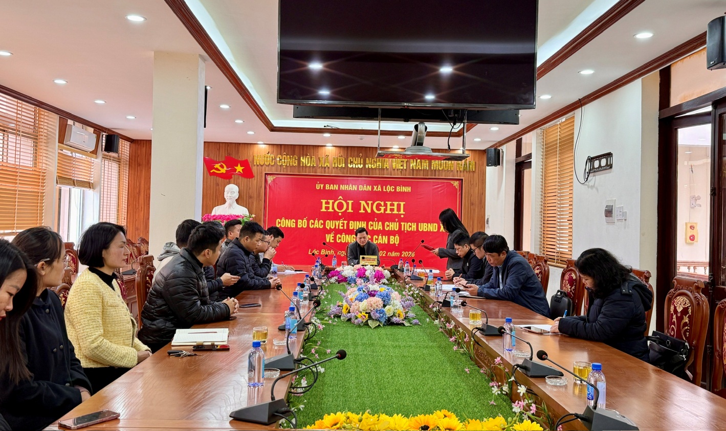 Tại hội nghị, các đại biểu đã được nghe lãnh đạo Phòng Văn hóa – xã hội, công bố Quyết định số 68/ QĐ- UBND, ngày 31/01/2026 của Chủ tịch Ủy ban nhân dân xã Lộc Bình về việc tiếp nhận ông Vi Văn Dưỡng, Phó Giám đốc phụ trách Ban Quản lý dự án khu vực III trực thuộc Ban Quản lý dự án đầu tư xây dựng tỉnh Lạng Sơn đến nhận công tác và bổ nhiệm giữ chức vụ Phó Giám đốc Ban Quản lý dự án đầu tư xây dựng xã Lộc Bình; Quyết định số 69/QĐ –UBND ngày 31/1/2026 của Chủ tịch Ủy ban nhân dân xã Lộc Bình về việc giao ông Vi Văn Dưỡng, Phó Giám đốc Ban Quản lý dự án đầu tư xây dựng xã Lộc Bình phụ trách Ban Quản lý dự án đầu tư xây dựng xã Lộc Bình, tỉnh Lạng Sơn kể từ ngày 01/02/2026 cho đến khi kiện toàn được chức vụ Giám đốc Ban Quản lý dự án đầu tư xây dựng xã Lộc Bình. Các Quyết định tiếp nhận và bố trí công tác đối với viên chức Ban Quản lý dự án khu vực III trực thuộc Ban Quản lý dự án đầu tư xây dựng tỉnh Lạng Sơn đến nhận công tác tại Ban Quản lý dự án đầu tư xây dựng xã Lộc Bình thuộc Ủy ban nhân dân xã Lộc Bình, tỉnh Lạng Sơn kể từ ngày 01/02/2026.