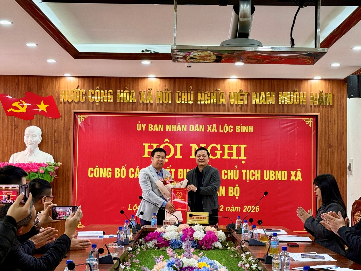 Sáng ngày 02/02/2026, UBND xã Lộc Bình đã tổ chức Hội nghị Công bố các Quyết định của Chủ tịch UBND xã về công tác cán bộ. Tham dự hội nghị có đồng chí Triệu Thanh Hùng, Phó Chủ tịch UBND xã; Lãnh đạo Văn phòng HĐND& UBND, Phòng Văn hóa – Xã hội, Phòng Kinh tế, Trung tâm Phục vụ hành chính công, Trung tâm Dịch vụ công ích, Trạm y tế xã; cùng toàn thể viên chức, người lao động của Ban Quản lý dự án đầu tư xây dựng xã Lộc Bình.