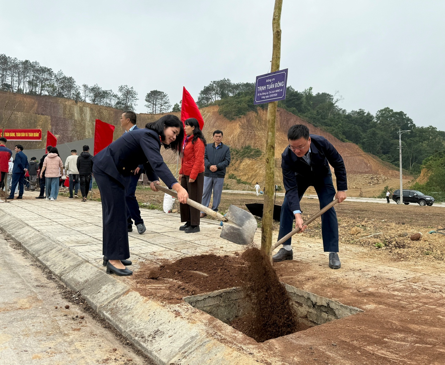 Ngay sau lễ phát động, lãnh đạo Thường trực Đảng ủy, HĐND&UBND, UBMTTQVN xã Lộc Bình và các đại biểu đã trồng 50 cây hoa bằng lăng tại xung quanh khuôn viên khu tái định cư thôn Pò Khoang.