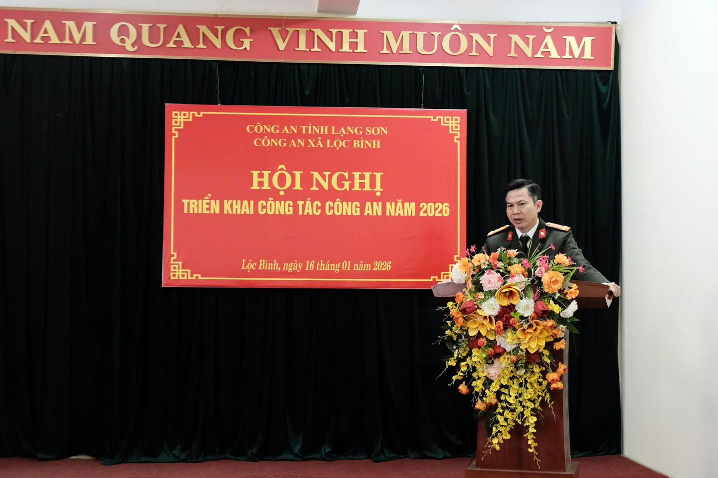 Phát biểu chỉ đạo tại hội nghị, Lãnh đạo Công an tỉnh và Lãnh đạo UBND xã đã biểu dương tinh thần trách nhiệm, sự nỗ lực của lực lượng Công an xã Lộc Bình trong thời gian qua; đồng thời yêu cầu lực lượng Công an xã tiếp tục chủ động nắm chắc tình hình, nâng cao hiệu quả công tác phòng ngừa, kịp thời tham mưu giải quyết các vấn đề phát sinh ngay từ cơ sở, trước mắt là bảo đảm tuyệt đối an toàn Đại hội đại biểu toàn quốc lần thứ XIV của Đảng, Bầu cử đại biểu Quốc hội khóa XVI và bầu cử đại biểu Hội đồng nhân dân các cấp nhiệm kỳ 2026 – 2031, Tết Nguyên đán Bính Ngọ năm 2026…
