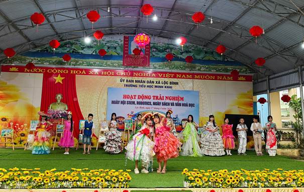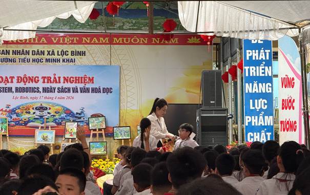 Thực hiện kế hoạch Số 111/KH-UBND, ngày 03 tháng 4 năm 2026 của UBND xã Lộc Bình Kế hoạch Tổ chức sinh hoạt chuyên đề tăng cường kỹ năng trải nghiệm cho học sinh tiểu học cụm 10 năm học 2025 – 2026. Sáng ngày 17/4/2026, Trường Tiểu học Minh Khai long trọng tổ chức Chương trình hoạt động trải nghiệm với chủ đề “Ngày hội STEM, Robotics, Ngày Sách và Văn hóa đọc”.