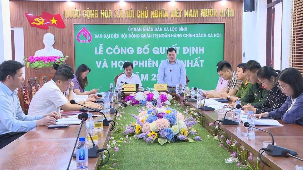 Ngày 26/3/2026, UBND xã Lộc Bình tổ chức Hội nghị công bố quyết định thành lập Ban đại diện Hội đồng quản trị Ngân hàng Chính sách xã hội và đánh giá kết quả hoạt động 3 tháng đầu năm 2026. Dự hội nghị có đồng chí Lăng Văn Chí, Phó Bí thư Thường trực Đảng ủy xã; đồng chí Đỗ Công Trung, Phó Bí thư Đảng ủy, Chủ tịch UBND xã; đồng chí Hoàng Thị Hiệu, Chủ tịch Ủy ban MTTQ xã; đồng chí Mai Thị Phương Bình, Phó giám đốc phòng giao dịch Ngân hàng Chính sách xã hội Lộc Bình; đại diện lãnh đạo các ban, ngành, đoàn thể; đại diện các tổ chức chính trị - xã hội xã.