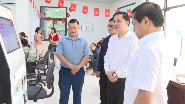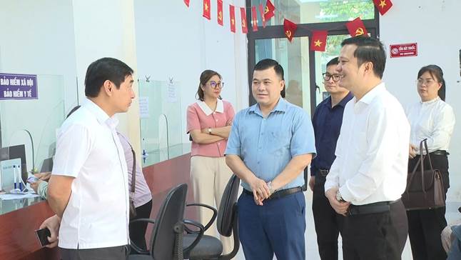 Đoàn kiểm tra và lãnh đạo Thường trực Đảng ủy, UBND xã khảo sát tại Trung tâm Phục vụ Hành chính công xã Lộc Bình