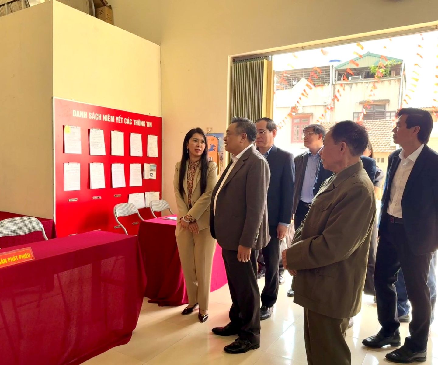 Đoàn công tác kiểm tra điểm bỏ phiếu tại nhà văn hóa thôn Lao động, xã Lộc Bình