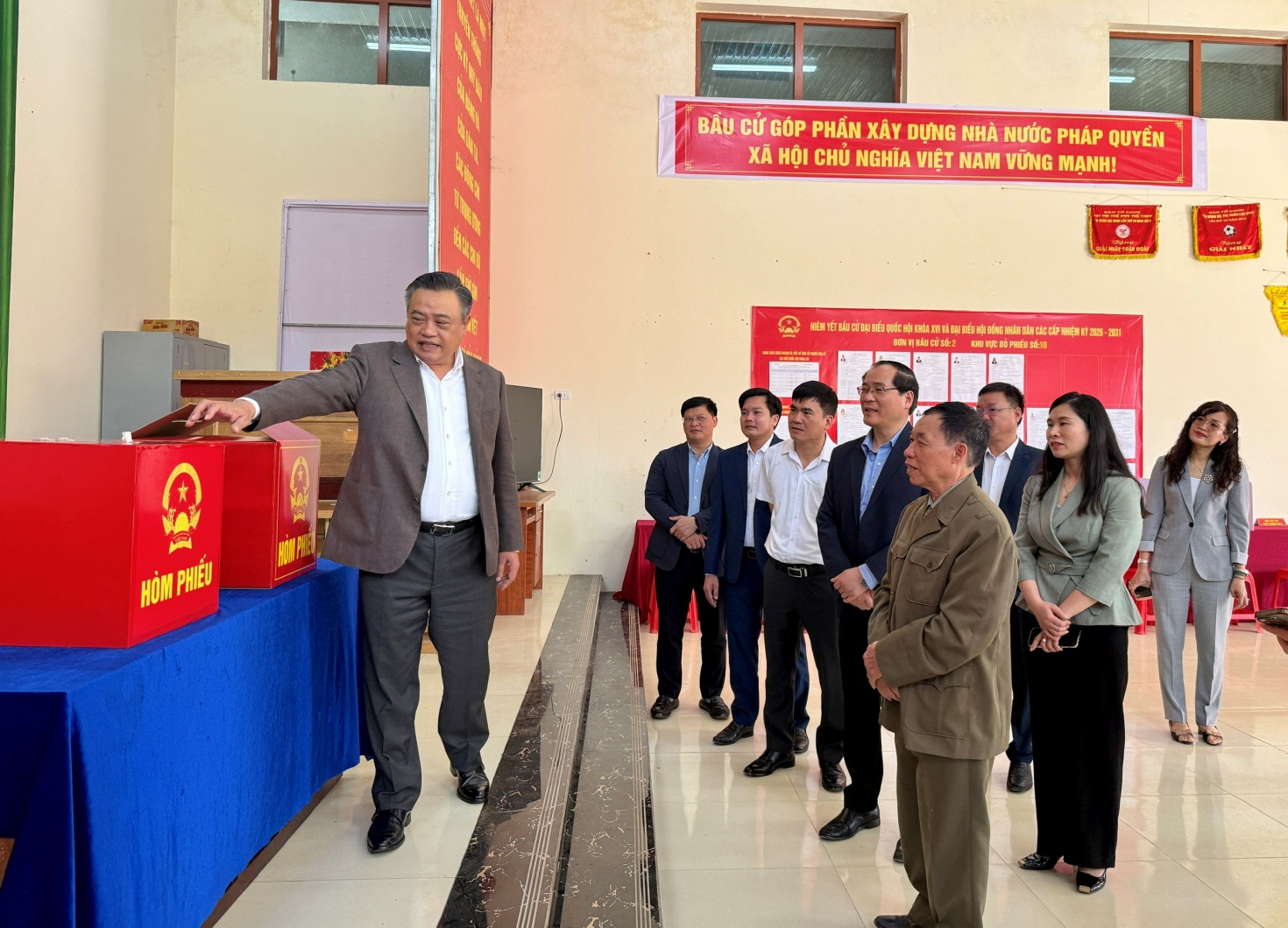 Sau khi kết thúc hội nghị tiếp xúc cử tri vận động bầu cử, đoàn công tác của Ủy ban Kiểm tra Trung ương và của tỉnh đi thăm, kiểm tra điểm bỏ phiếu tại thôn Lao động, xã Lộc Bình.