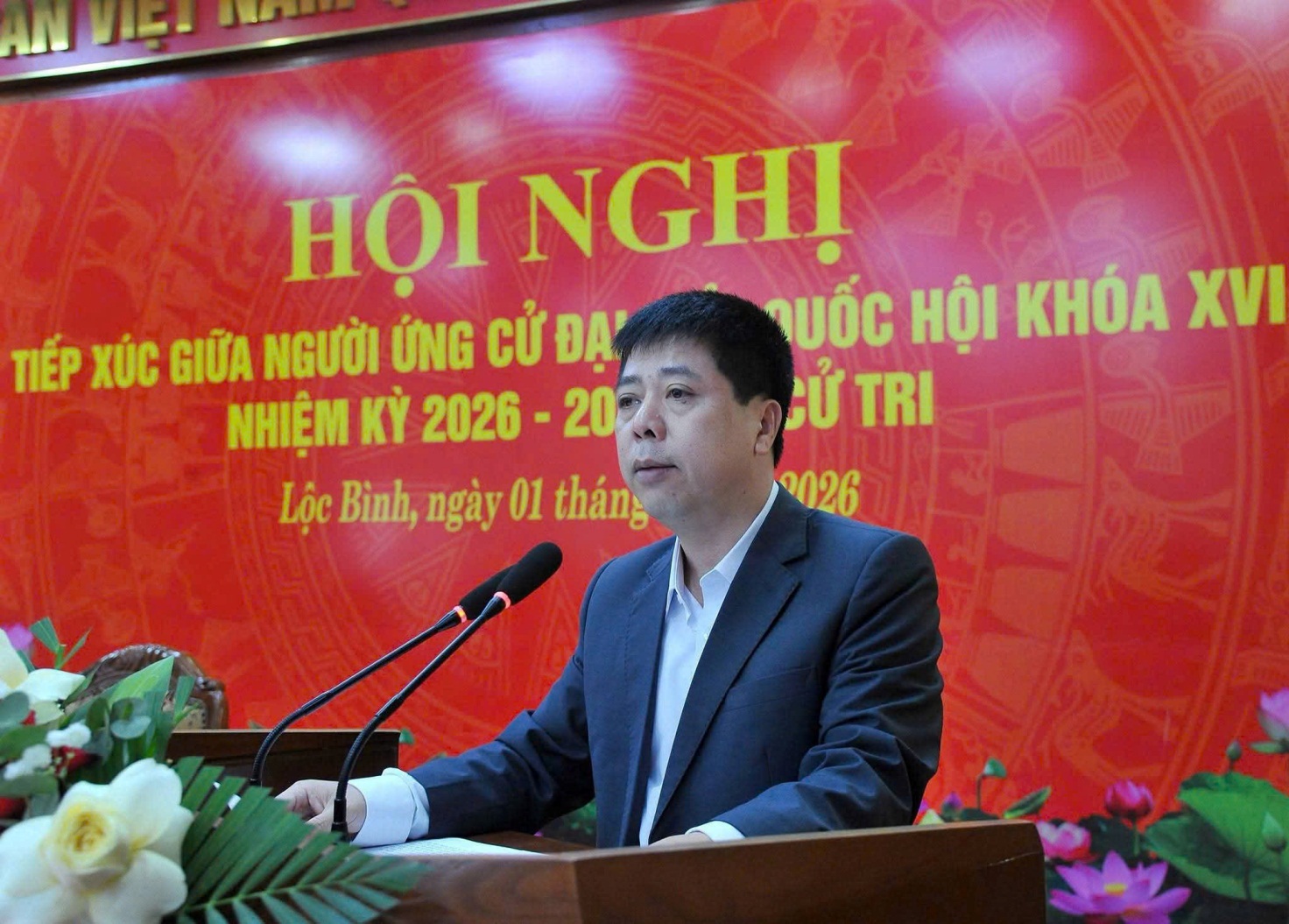 Sáng ngày 01/3/2026, các ứng cử viên đại biểu Quốc hội (ĐBQH) khóa XVI nhiệm kỳ 2026 - 2031 thuộc đơn vị bầu cử số 1 đã tiếp xúc cử tri vận động bầu cử tại xã Lộc Bình. Hội nghị được tổ chức bằng hình thức trực tiếp kết hợp trực tuyến đến điểm cầu 10 xã: Mẫu Sơn, Na Dương, Lợi Bác, Thống Nhất, Xuân Dương, Khuất Xá, Đình Lập, Châu Sơn, Kiên Mộc, Thái Bình.