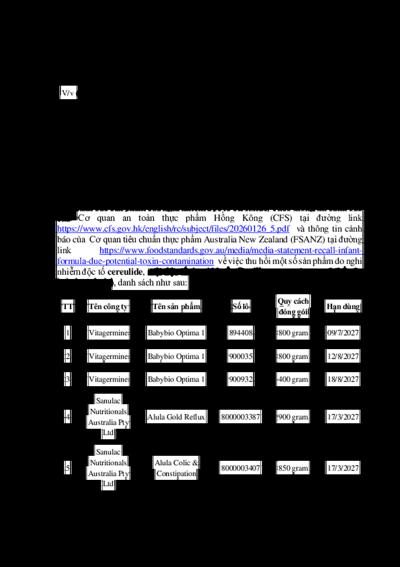 | Tiêu đề văn bản | CÔNG VĂN Về việc cảnh báo sản phẩm sữa nghi nhiễm độc tố cereulide | ||