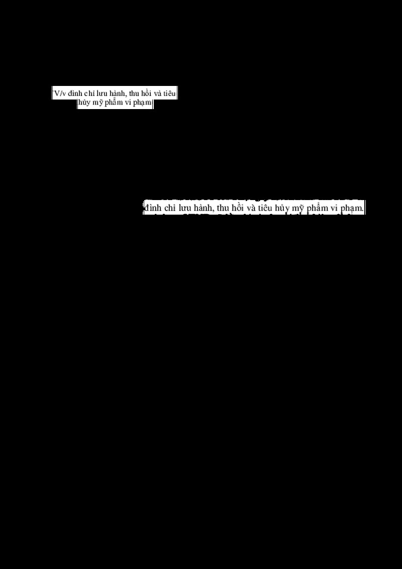 | Tiêu đề văn bản | CÔNG VĂN Về việc đình chỉ lưu hành, thu hồi và tiêu hủy mỹ phẩm vi phạm | ||