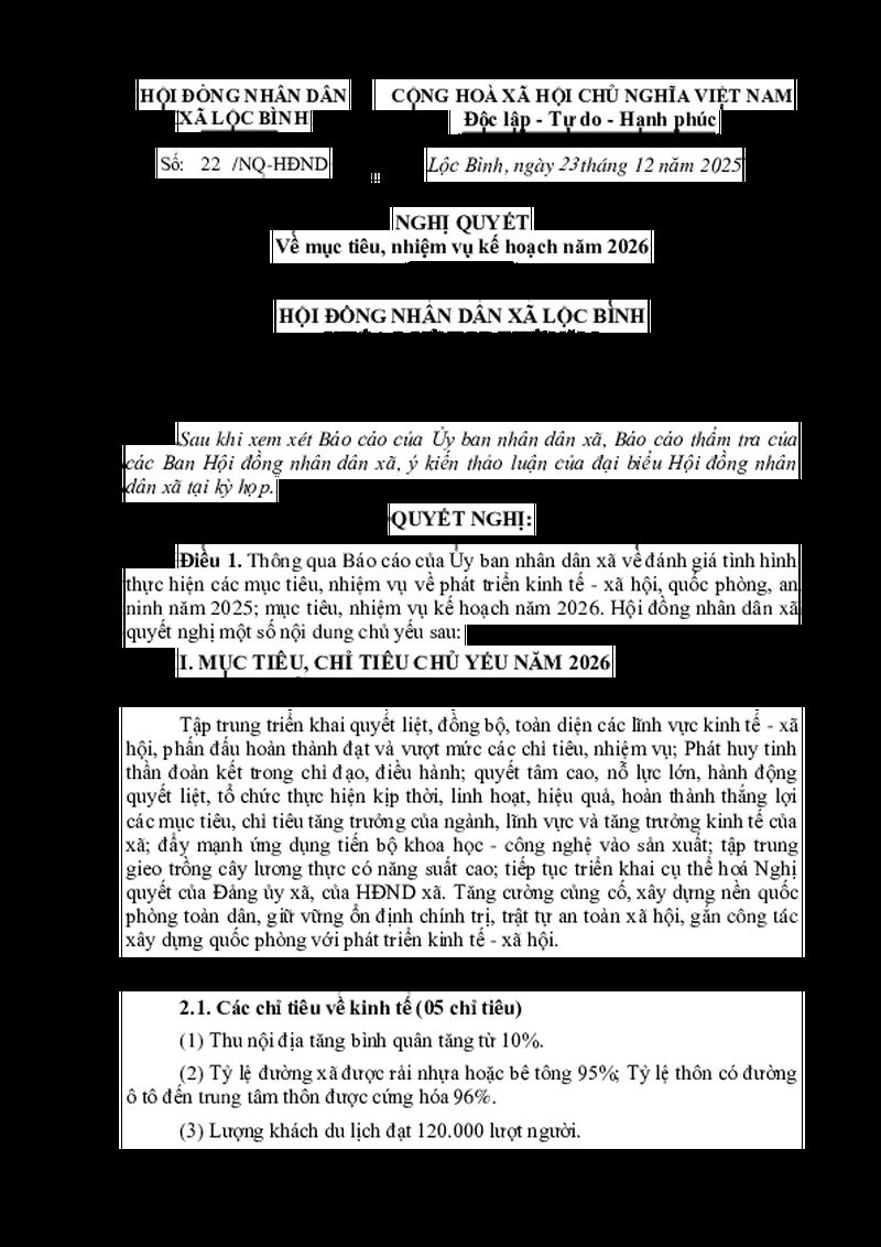 | Tiêu đề văn bản | NGHỊ QUYẾT Về mục tiêu, nhiệm vụ kế hoạch năm 2026 | ||