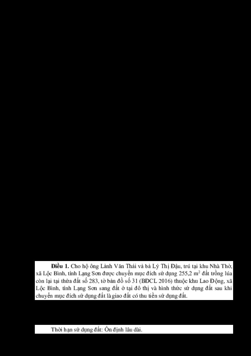 | Tiêu đề văn bản | QUYẾT ĐỊNH Về việc cho phép chuyển mục đích sử dụng đất | ||