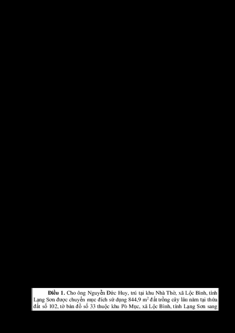 | Tiêu đề văn bản | QUYẾT ĐỊNH Về việc cho phép chuyển mục đích sử dụng đất | ||