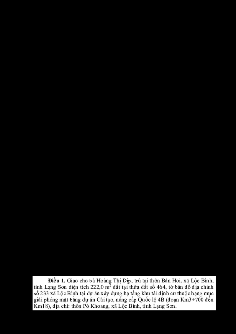 | Tiêu đề văn bản | QUYẾT ĐỊNH Về việc giao đất tái định cư cho bà Hoàng Thị Dịp | ||