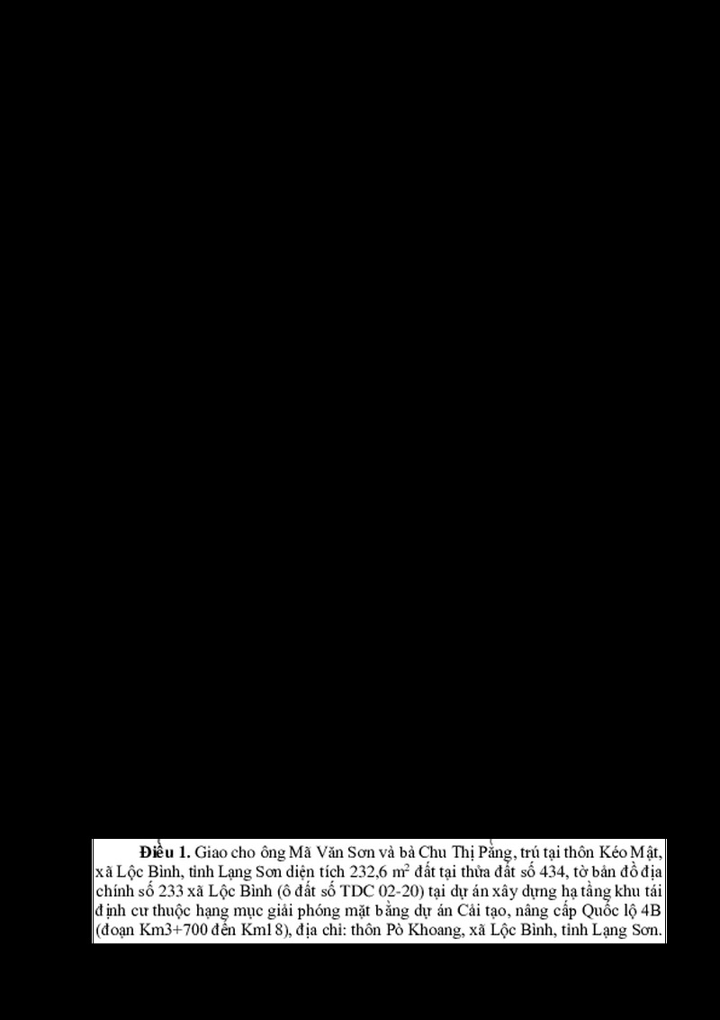 | Tiêu đề văn bản | QUYẾT ĐỊNH Về việc giao đất tái định cư cho ông Mã Văn Sơn và bà Chu Thị Pằng | ||